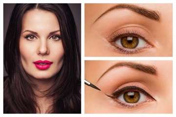 Чтобы завершить мейкап, подкрашивают глаза и губы. Вечерний макияж глаз – это отдельная тема. А для повседневного достаточно будет провести стрелку по ресничному краю подвижного века, нанести матовые тени природного цвета и подкрасить ресницы. Тонкие губы визуально увеличивают при помощи хайлайтера над верхней губой и скульптора под нижней.