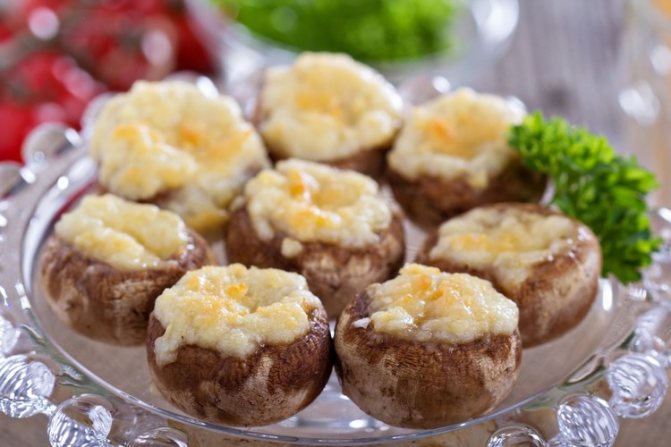 Вкусные шампиньоны, запечённые с сыром и чесноком