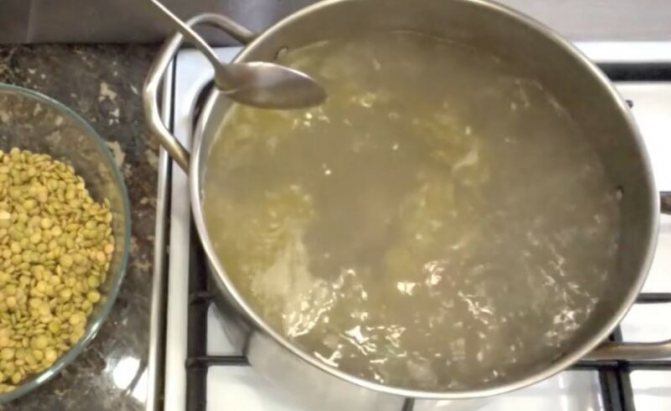 Куриный бульон, если он холодный или замороженный, ставим на небольшой огонь и доводим до кипения. Когда жидкость хорошо закипела, уменьшаем огонь до минимального и накрываем крышкой.