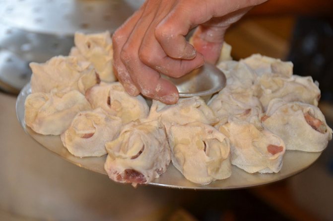 Рецепт мант, а точнее его приготовление многим напоминает обычные русские пельмени. И это не удивительно, ведь единственное их отличие — это форма. Правда некоторые хозяйки стараются залеплять тесто, как требует национальный рецепт.