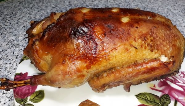 - По прошествии этого времени отправляем птицу запекать в хорошо нагретую духовку (до 180 градусов) на 1,5 часа.