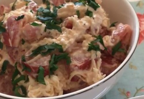 Рецепт быстрого салата из помидоров и плавленого сыра